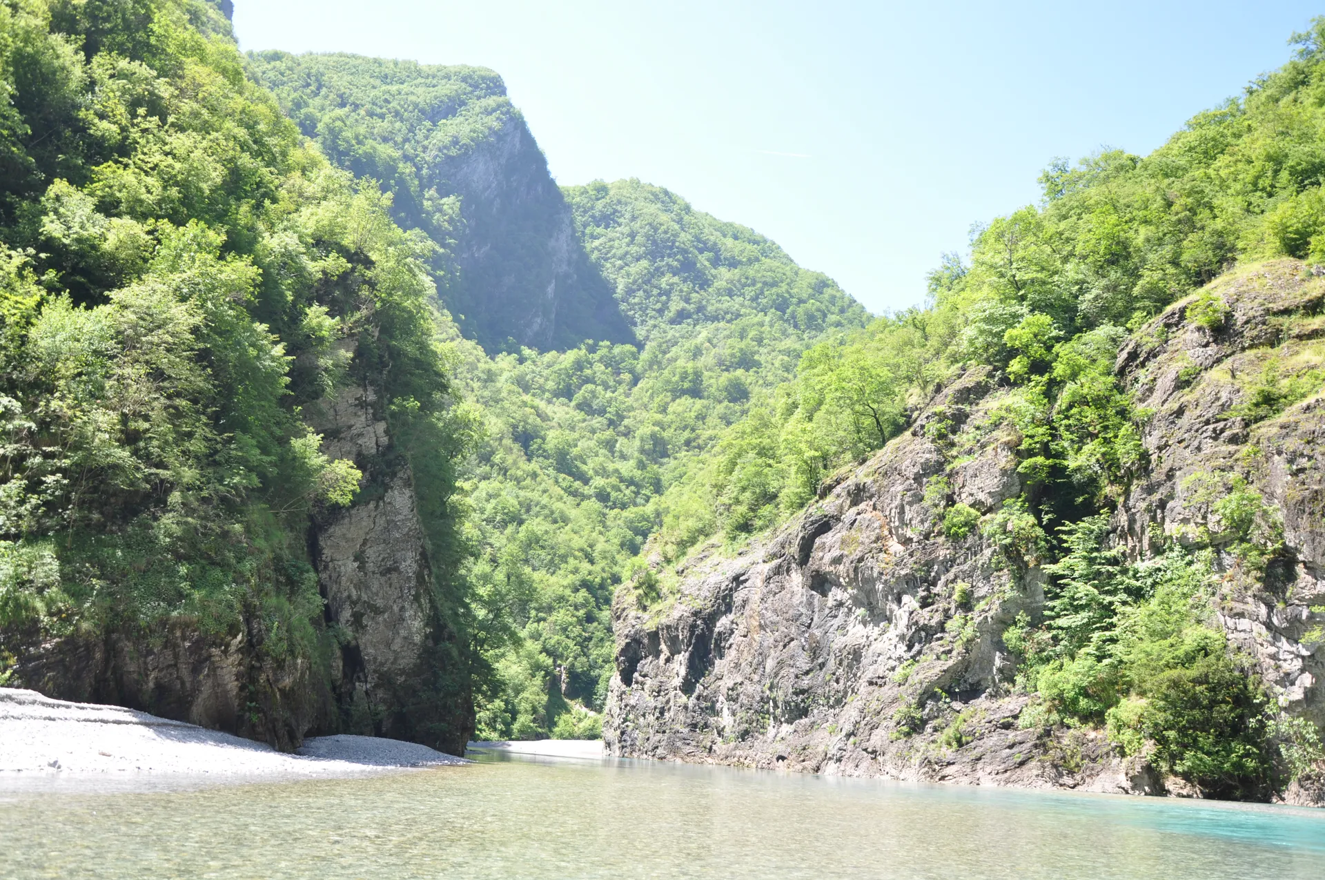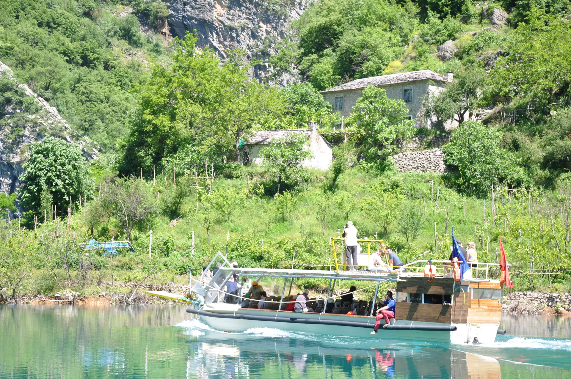 View from the boat speeding through the deep river canyons of northern Albania.